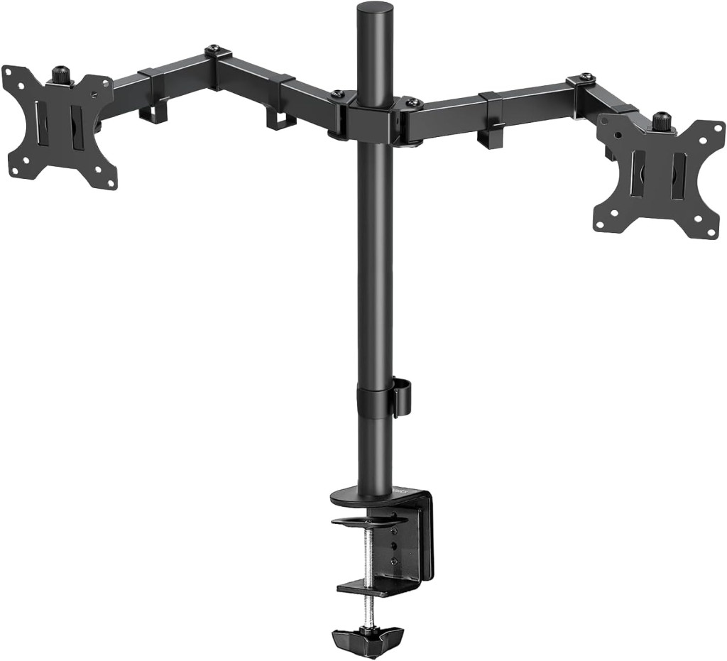 Amazon Basics Állítható Magasságú Monitorállvány Két Monitorhoz, Fekete, 33-69 cm, 360 Fokos Forgás