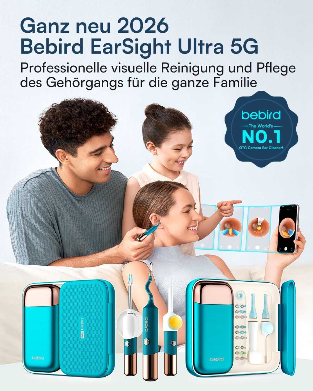 BEBIRD EarSight Ultra Fültisztító És Ápoló Készülék, 1920P HD Kamera, 5G WiFi, Rugalmas Otoscope, 5 Cserélhető Fej, Szilikon, ENT Otthonra, Óceán Kék