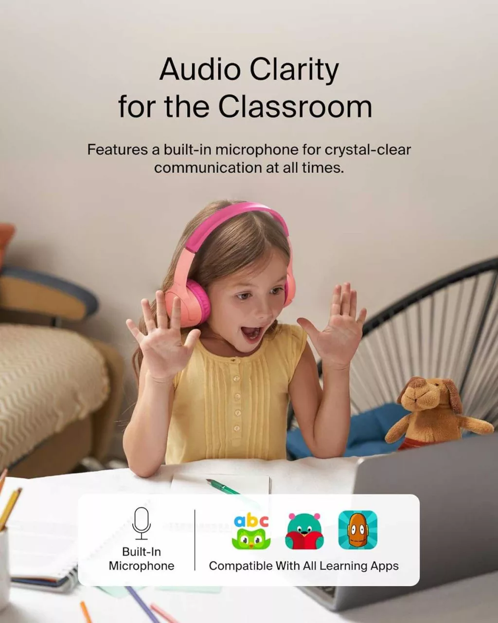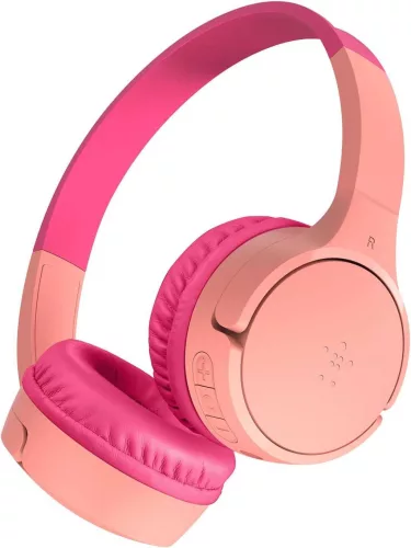 Belkin SoundForm Mini Gyerek Fejhallgató, Vezeték Nélküli, Bluetooth 5.3, 30 h Üzemidő, 85 dB Hangerőkorlát, Mikrofon, 3,5 mm Jack, USB-C, Rózsaszín