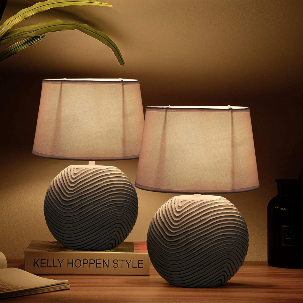 A Brubaker 2 darabos asztali lámpa modern, matt fehér és szürke színkombinációban készült, ovális árnyékkal. A kerámiabázis elegáns megjelenést biztosít, magassága 38 cm, míg a lámpa alapjának méretei 21 x 19 x 8 cm. Az E14 foglalatú lámpák maximális teljesítménye 40 W, energiatakarékos LED izzókkal is használható. A 1,25 m hosszú kábel kapcsolóval ellátott, a lámpák bármely beltéri térben tökéletes hangulatot teremtenek.
