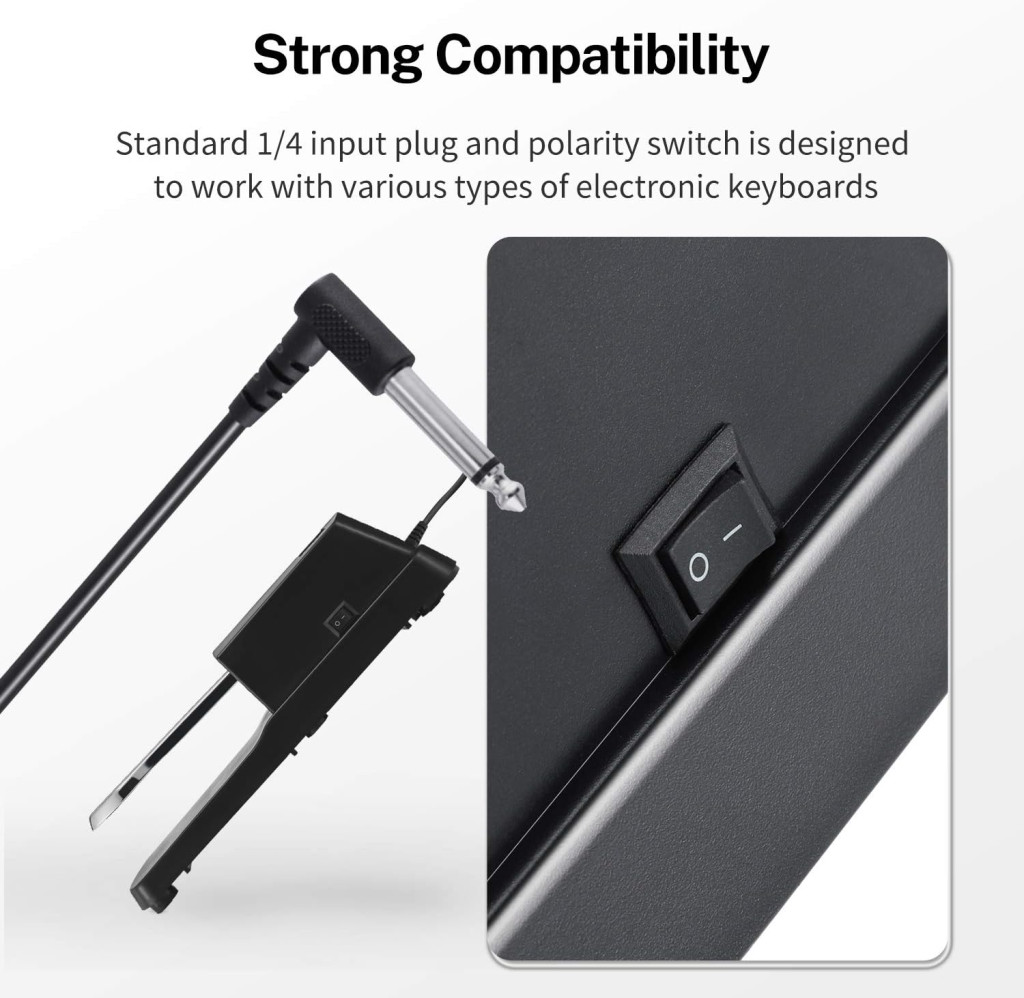 A pedál kialakítása felnőtt zenészek igényeihez igazodik, de kezdőknek is könnyen megszokható érzetet ad. A csúszásgátló gumitalp a padlón stabilan tartja a pedált, így nem kell minden játék közben a helyére igazítani. Univerzális, 6,35 mm-es jack csatlakozójának és polaritáskapcsolójának köszönhetően digitális zongorához, elektronikus billentyűzethez, MIDI-billentyűzethez és szintetizátorhoz egyaránt jól illeszkedik.