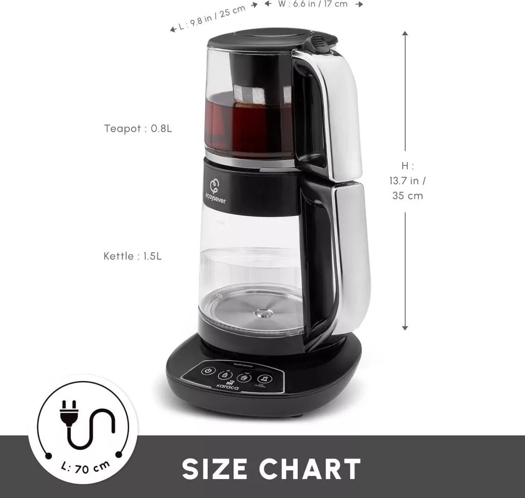 A KARACA Caysever intelligens hőmérséklet-szabályozása révén pontosan beállítható a kívánt hőfok, ami különösen hasznos a különböző teafajták, illetve a bébiételek elkészítésénél. A 60 perces melegen tartási funkcióval a frissen főzött tea hosszabb ideig élvezhető, a frissességjelző pedig segít eldönteni, mikor érdemes új adagot készíteni. Kompakt méreteivel, 2,2 kg-os tömegével és hordozható kialakításával a készülék jól elfér a konyhapulton, és igény szerint könnyen áthelyezhető a lakás bármely pontjára.