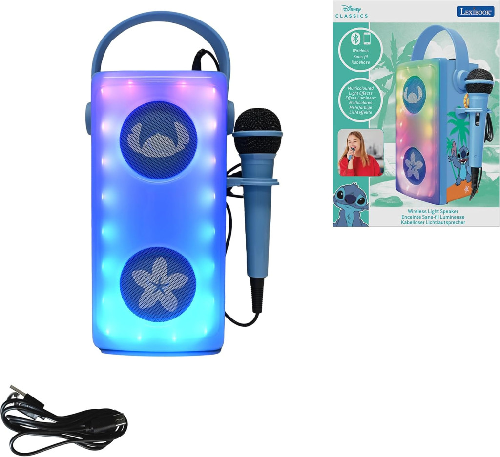 Lexibook Disney Stitch BTP185DZ Bluetooth Hangszóró, Vezeték Nélküli, Karaoke Mikrofon, Többszínű Fényhatások, USB, SD TF Kártya, Aux, Kék