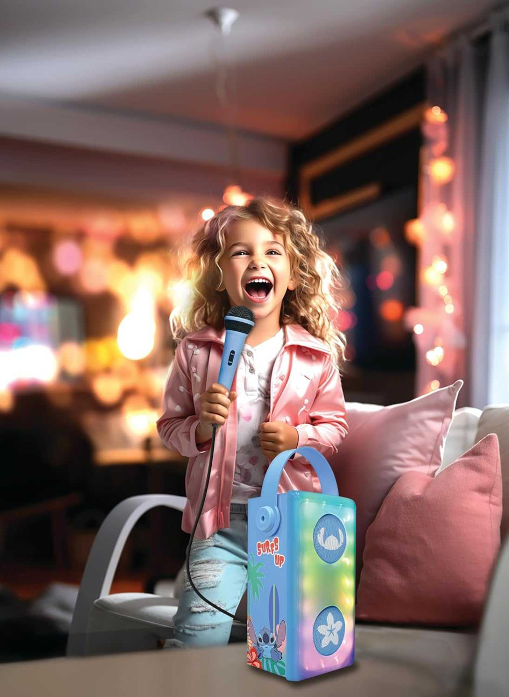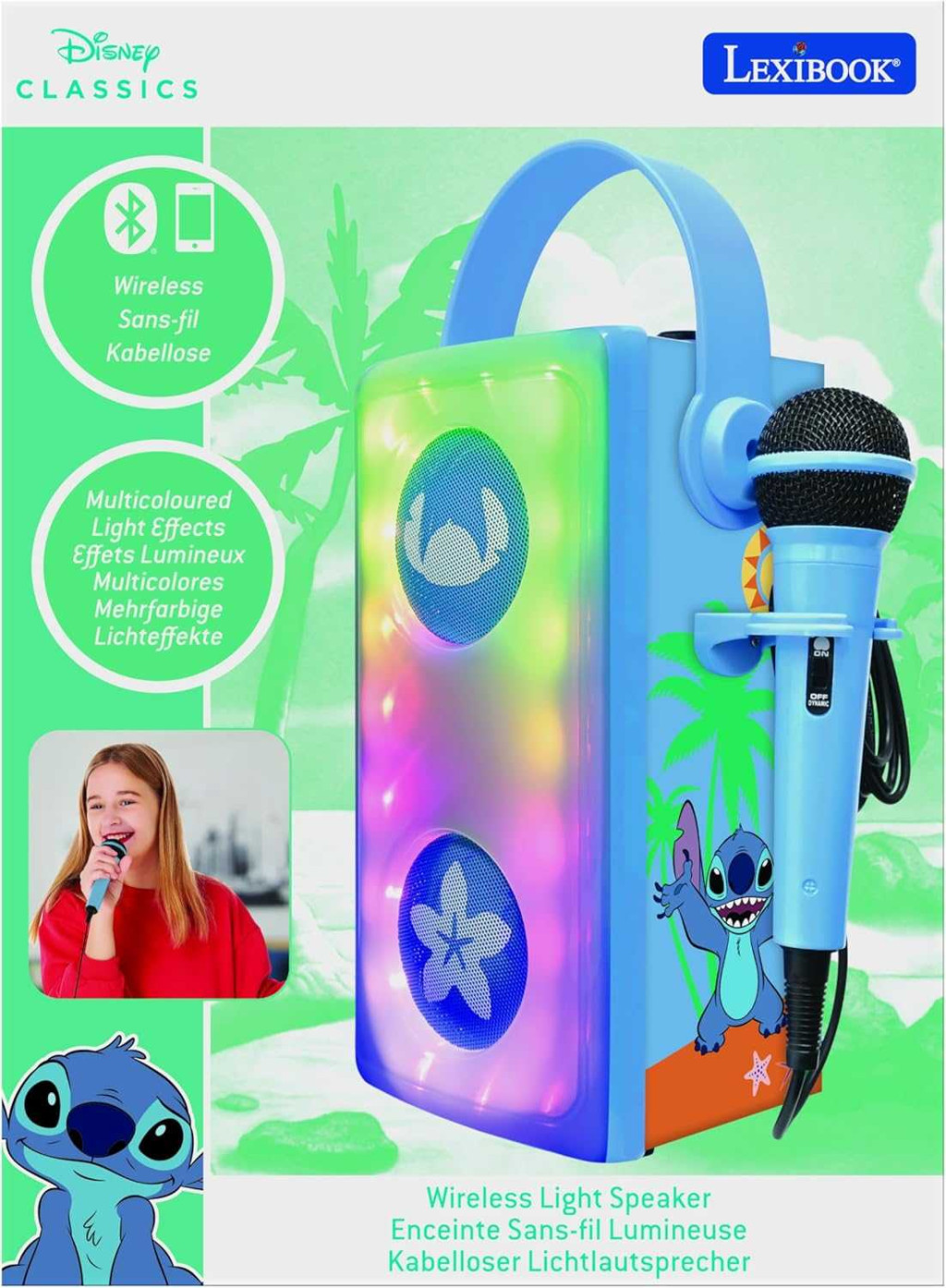 Lexibook Disney Stitch BTP185DZ Vezeték Nélküli Bluetooth 5.0 Hangszóró, Beépített Mikrofon, Karaoke, LED Fényhatás, USB, SD TF, Aux, Kék