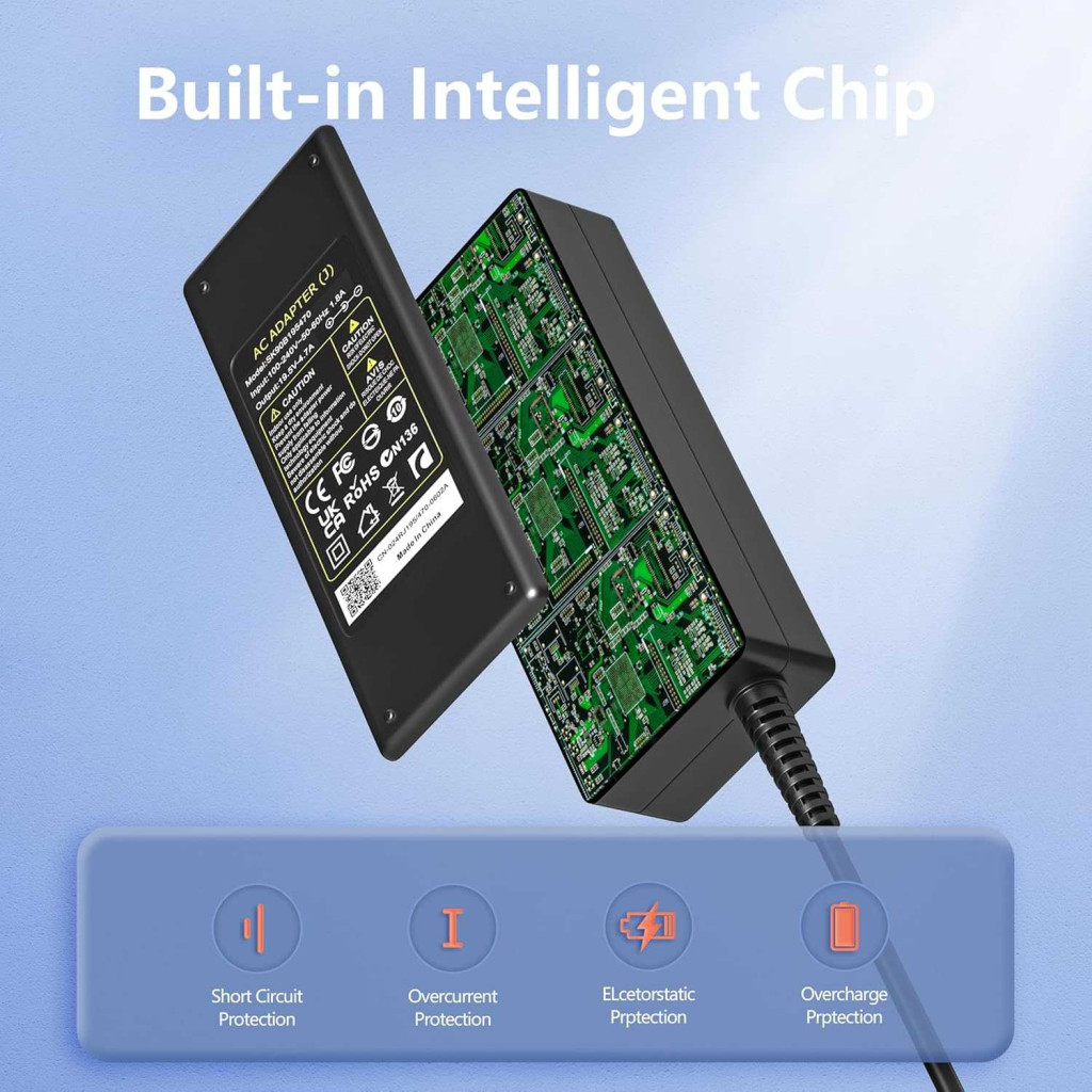 A töltő bemeneti oldalon 100–240 V feszültségtartományban, 50–60 Hz hálózati frekvencián használható, ezért utazás közben is rugalmasan alkalmazható. A 6,5 mm × 4,4 mm méretű csatlakozódugóval és lekerekített végződéssel biztonságosan és stabilan csatlakozik a készülékhez. A csatlakozó felületét réz–nikkel bevonattal kezelték, ami növeli a korrózióállóságot és az élettartamot.