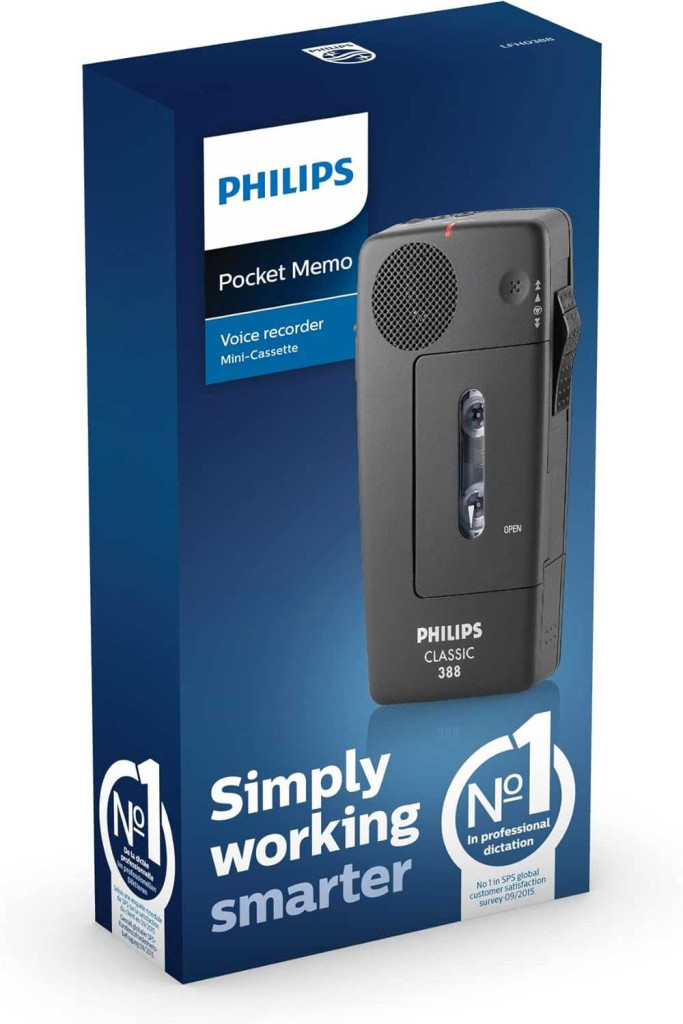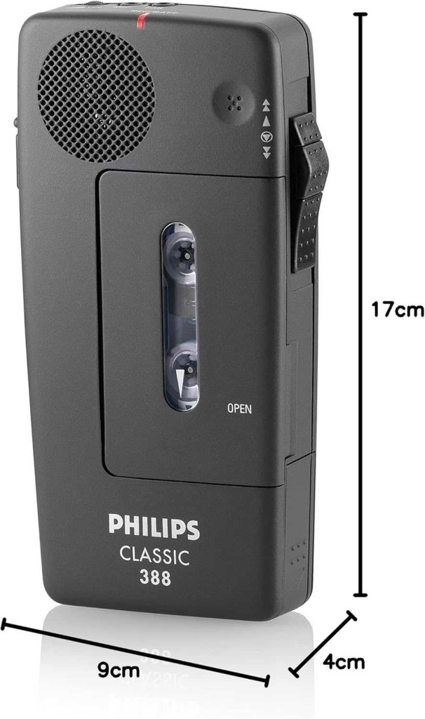 Philips LFH0388 Pocket Memo Diktafon, Analóg, Mini Kazetta, Mono, Beépített Mikrofon, Csúszókapcsolós Szerkesztés, Hangaktiválás, Fekete