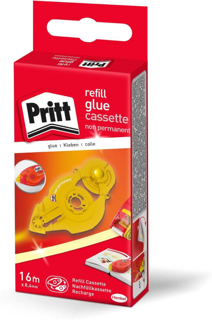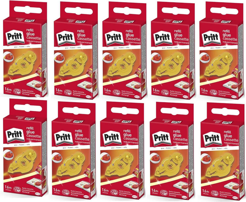 Pritt ZRXNH Ragasztószalag Utántöltő Kazetta, Nem Tartós Ragasztó, Eltávolítható Rögzítés, Teljes Felületi Felhordás, 16 m, 8,4 mm, 10 Db, Sárga, Műanyag, 100% Újrahasznosítható, Szabadtéri Használat