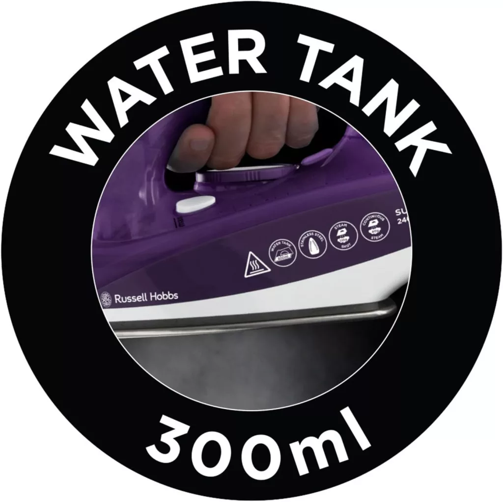 A Russell Hobbs Supreme Steam Iron 2400W teljesítménnyel, nem tapadó rozsdamentes acél talppal és 300 ml-es könnyen tölthető víztartállyal rendelkezik, amely gyors és hatékony vasalást biztosít bármilyen textíliánál. Az erős függőleges gőz funkció és az öntisztító rendszer kényelmes és tartós használatot garantál, új állapotban.
