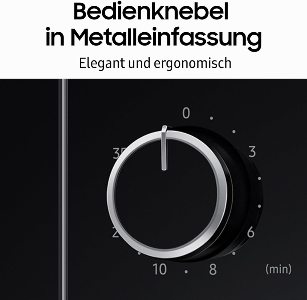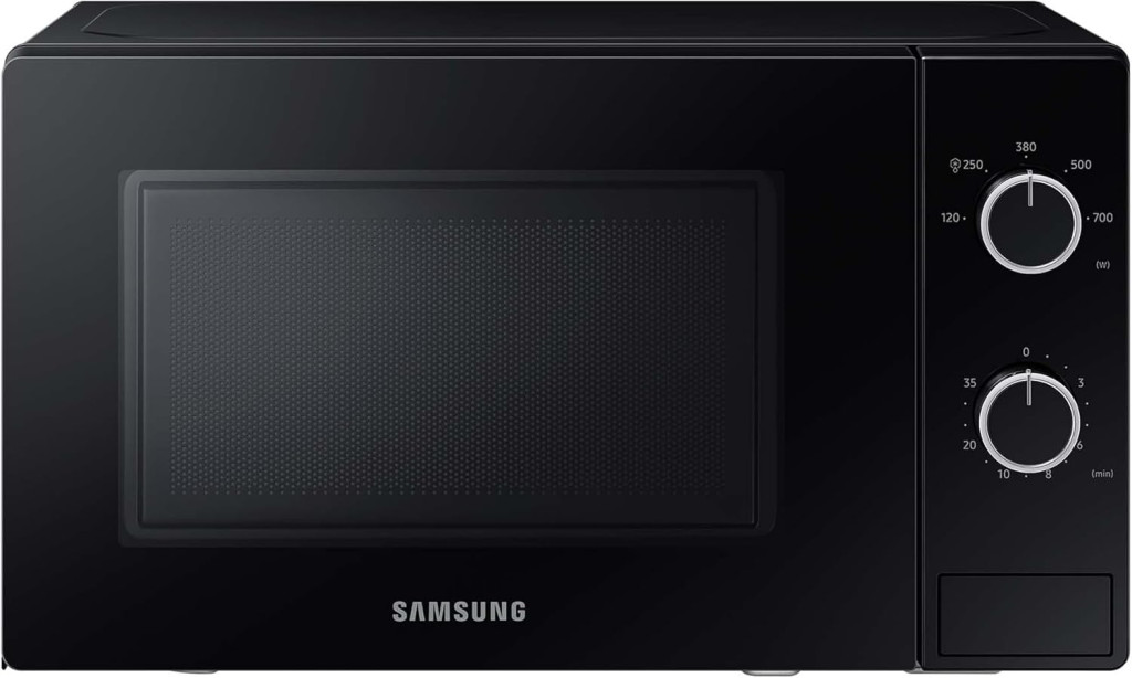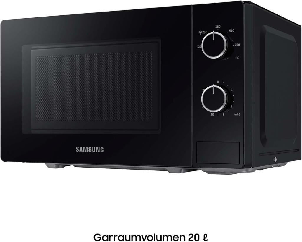 A Samsung MS20A3010AL/EG Solo mikrohullámú sütő 700 W teljesítménnyel és 20 literes térfogattal, 5 teljesítményszinttel, valamint felolvasztási funkcióval rendelkezik, fekete színű és rozsdamentes acél anyagú, ideális otthoni használatra; állapot: új, korábban kibontott és tesztelt.