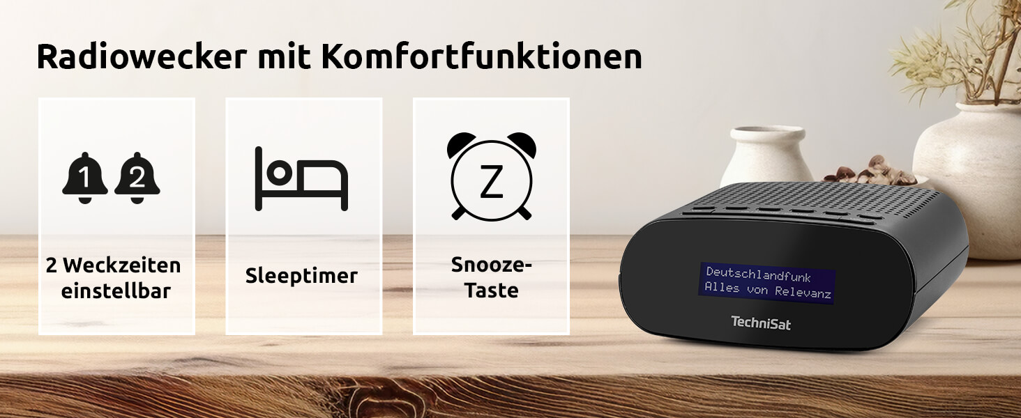 TechniSat Techniradio 50 Digitális Rádió és Ébresztőóra, DAB+, FM, Nagy LCD Kijelző, Két Ébresztési Időpont, Beépített Fejhallgató Kimenet, USB Tápellátás