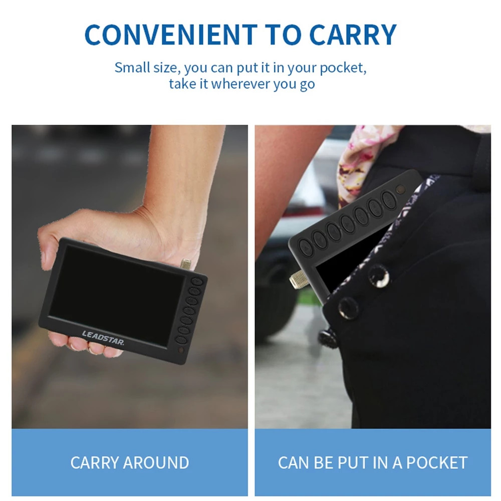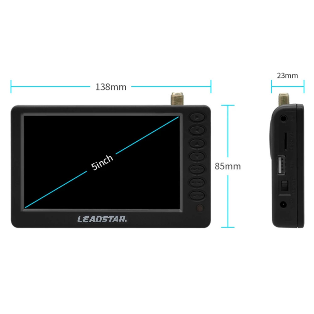 Fedezze fel a LEADSTAR D5 DVB-T2 digitális autós TV-t, mely 5 hüvelykes LED képernyővel, 800*480 felbontással és 165 fokos betekintési szöggel rendelkezik. Támogatja az FM rádiót, TF kártyát, U lemezt és akár 100 perc játékidőt kínál, így ideális társ utazásaihoz.