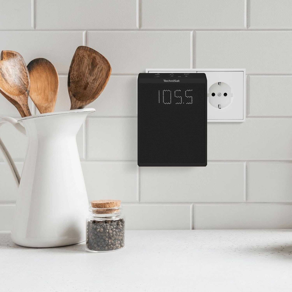 TechniSat Viola Socket Radio FM Rádió, Bluetooth 5.3, VHF Tuner, 30 Rádióállomás Memória, Mono Hangszóró 1.5 W RMS, LCD Kijelző, Fekete